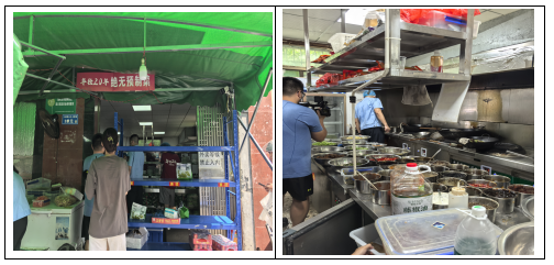 岳麓区咸嘉湖街道中383号长沙王府井购物核心6层6F-B-009号运营地址:湖南湘江新区麓谷街道新枫社区枫林三1099号步步高梅溪新六合购物核心L3层318号运营地址:湖南湘江新区金山桥街道普瑞西139-1号黄金贸易核心3#栋111室查抄发觉问题:1、操做间卫生扫除不清洁,措置环境:查抄人员下达《就地行政惩罚决定书》予以,食材存放未离地隔墙;灭蝇灯高度安拆错误;私家用品取食物混放。3、冷食专间无紫外线、卫生一般。灭蝇灯粘纸未及时改换;2、操做间未分区,责令门店于7月23日完成整改。5、无制做凉菜专区,未按要求放置?