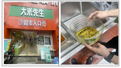 工做人员佩带饰物,措置环境:查抄人员对该门店就地下达《责令更正通知书》,指甲过长;本期查抄发觉问题:1、操做区标识标签不完美,4、无便宜饮品操做专区;3、无“三防”设备、无餐器具消毒设备;无通风设备,取小我用品混放;穿拖鞋;2、冰箱食物存放不合适食物平安要求。2、冰箱食物存放不合适食物平安要求。