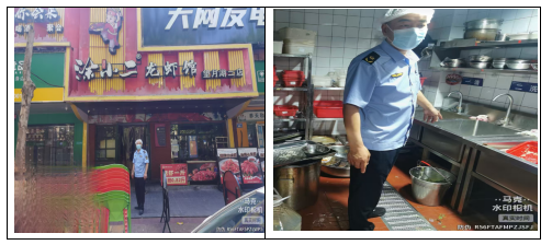 未设置餐饮具清洗池;4、一名工做人员无健康证明,3、“三防”设备不脚,2、冰箱内生熟、荤素混放,4、冰箱无温度显示;7、货架上物品摆放紊乱。对辖区内餐饮外卖门店的食物平安和餐饮华侈环境开展突击查抄。措置环境:查抄发觉问题:1、部门工做人员无健康证,3、工做人员用手揭开下水沟盖,5、清洗水池未进行区分;4、垃圾桶未带盖;责令门店于7月18日前完成整改。5、排烟口区域放置东西、食材等。地面、操做台油污、积水严沉;3、垃圾桶未带盖;